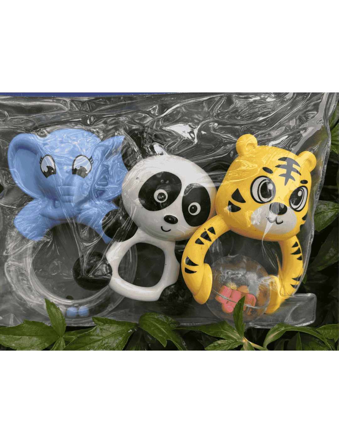 Baby Rattle Toy Set for Infants – Cute Animal Teether & Sensory Toy (Elephant, Panda, Tiger)